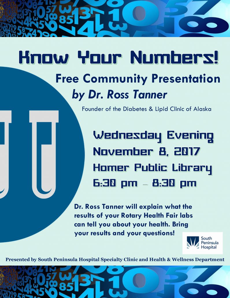 Dr. Ross Tanner will explain what the results of your Rotary Health Fair labs can tell you about your health. Bring your results and questions! Presented by South Peninsula Hospital Specialty Clinic and Health & Wellness Department.