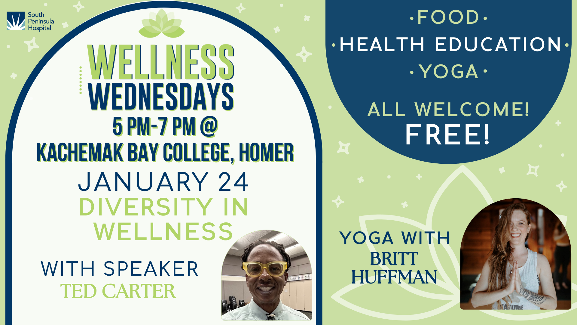 Join South Peninsula Hospital's Health and Wellness for Wellness Wednesday on January 24h from 5:00-7:00pm at Kachemak Bay Campus, Homer.